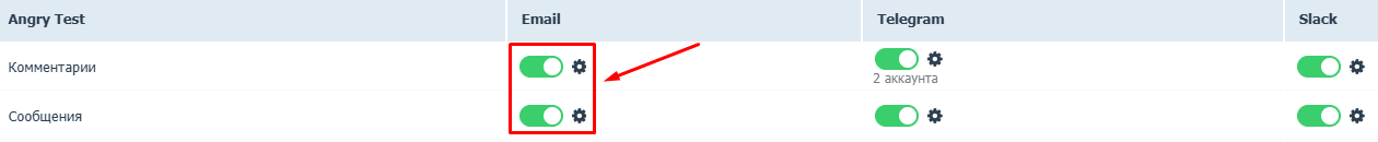 1. Проверьте, что переключатели для Telegram активированы.