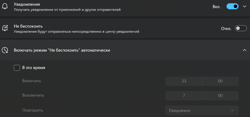3. В дополнительных настройках проверьте, не установлено ли у вас ограничение по времени, когда должны поступать уведомления, а также, что выбраны все нужные аккаунты, для которых будут отправляться уведомления.